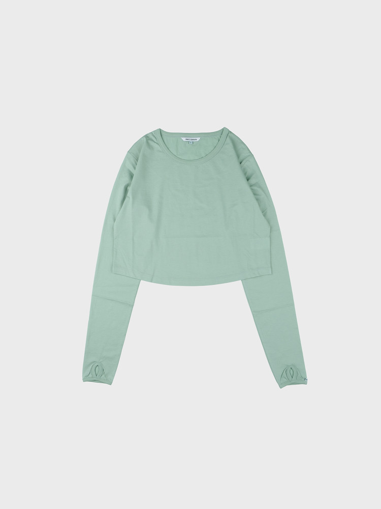 Featuring finger holes, it adds a stylish detail even when layered as an inner piece.