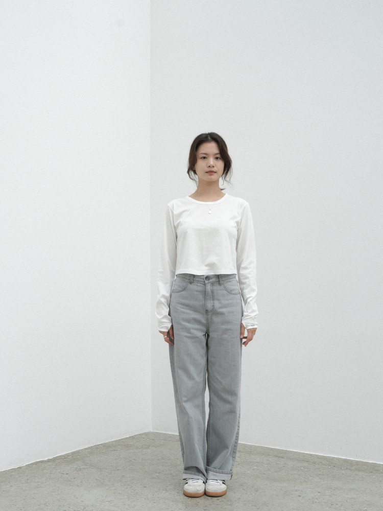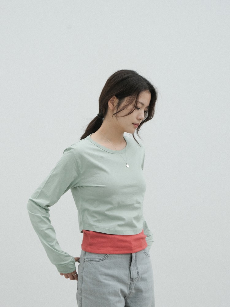 The cropped length contrasts with long sleeves, crafting a flowy and feminine silhouette.