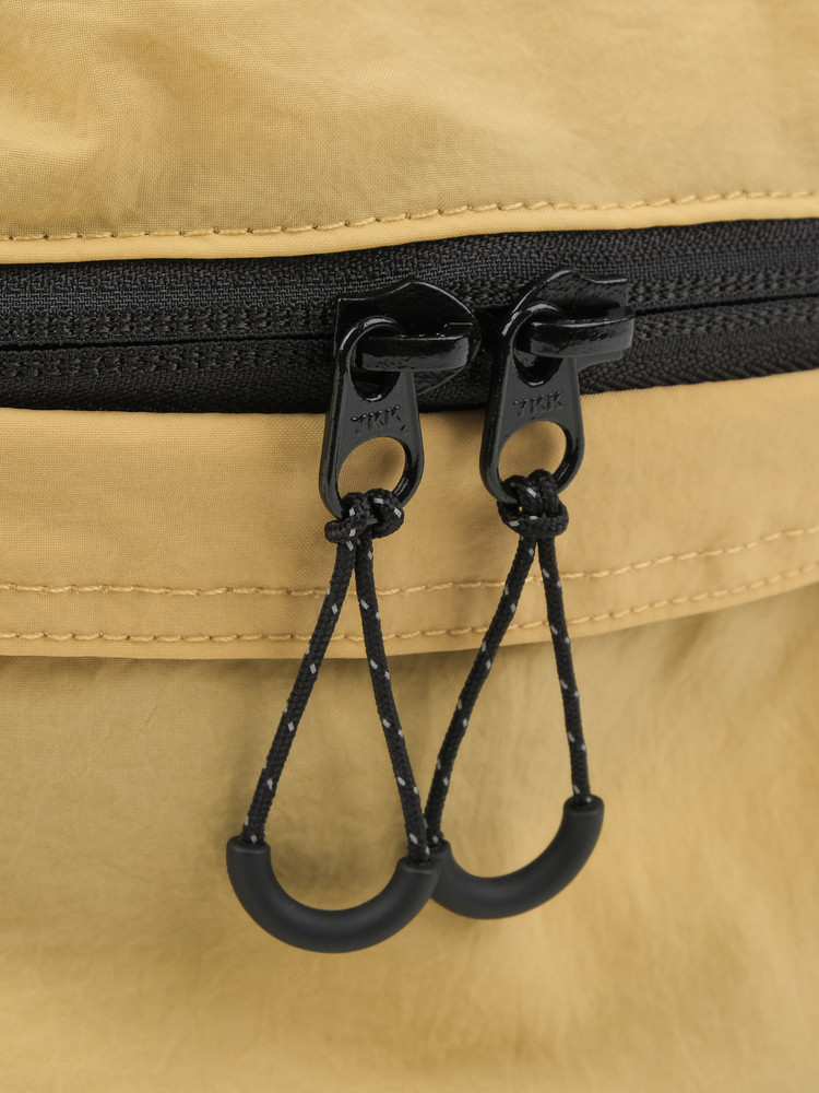 Crafted from a fabric that features a naturally crinkled texture from a washing process and the distinctive crispness of nylon.