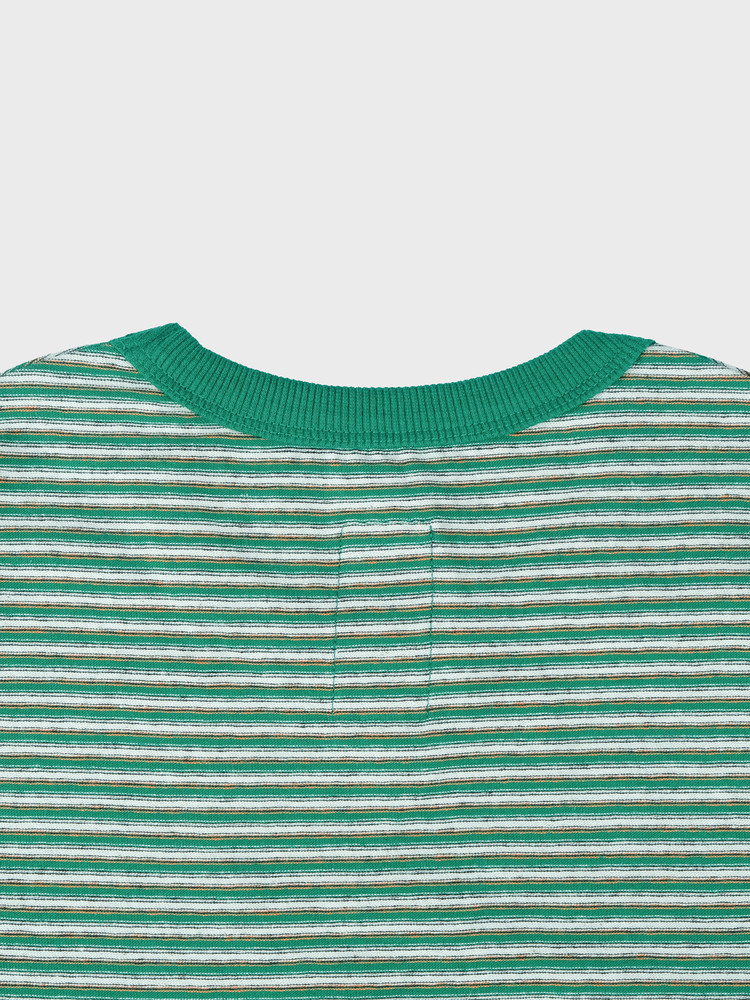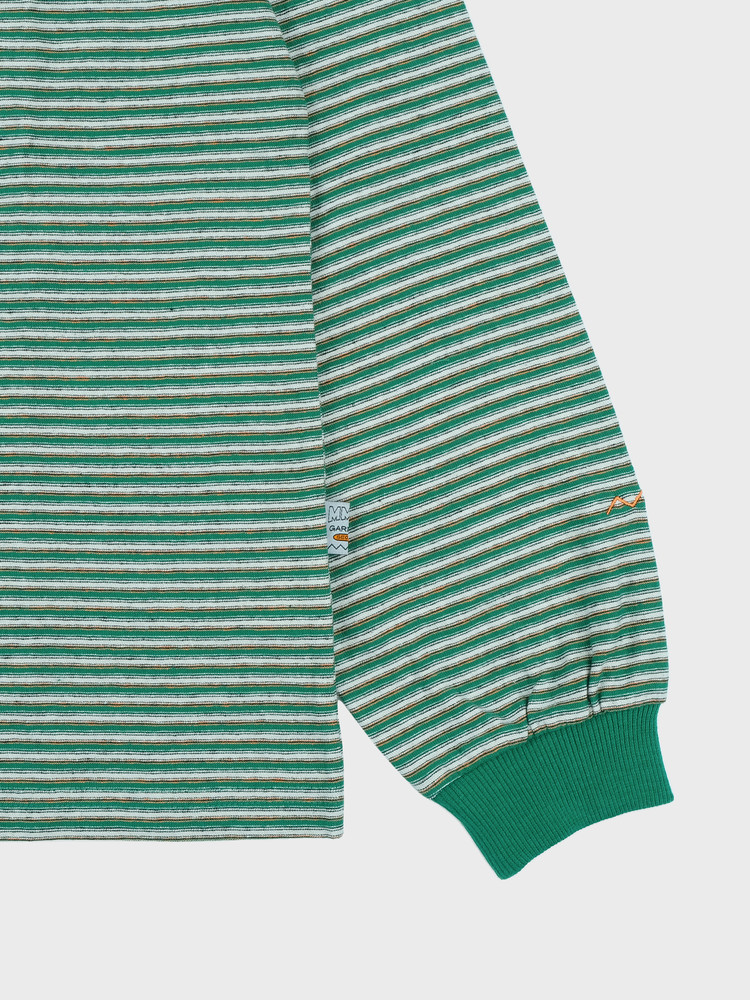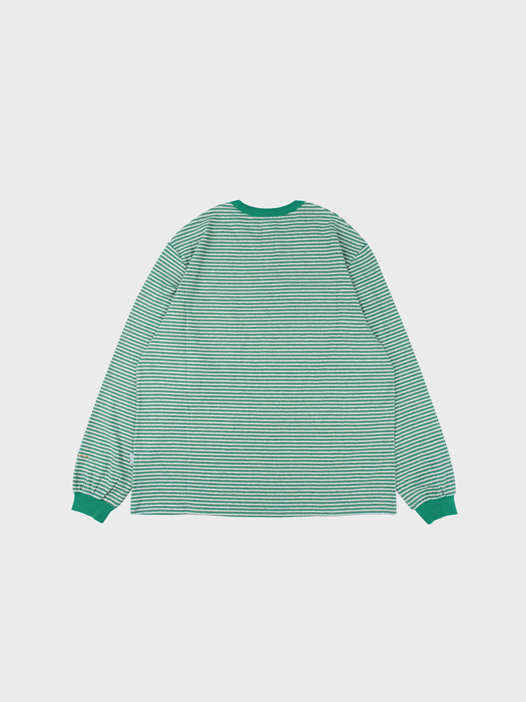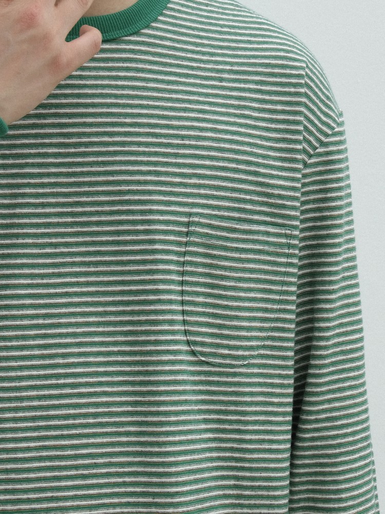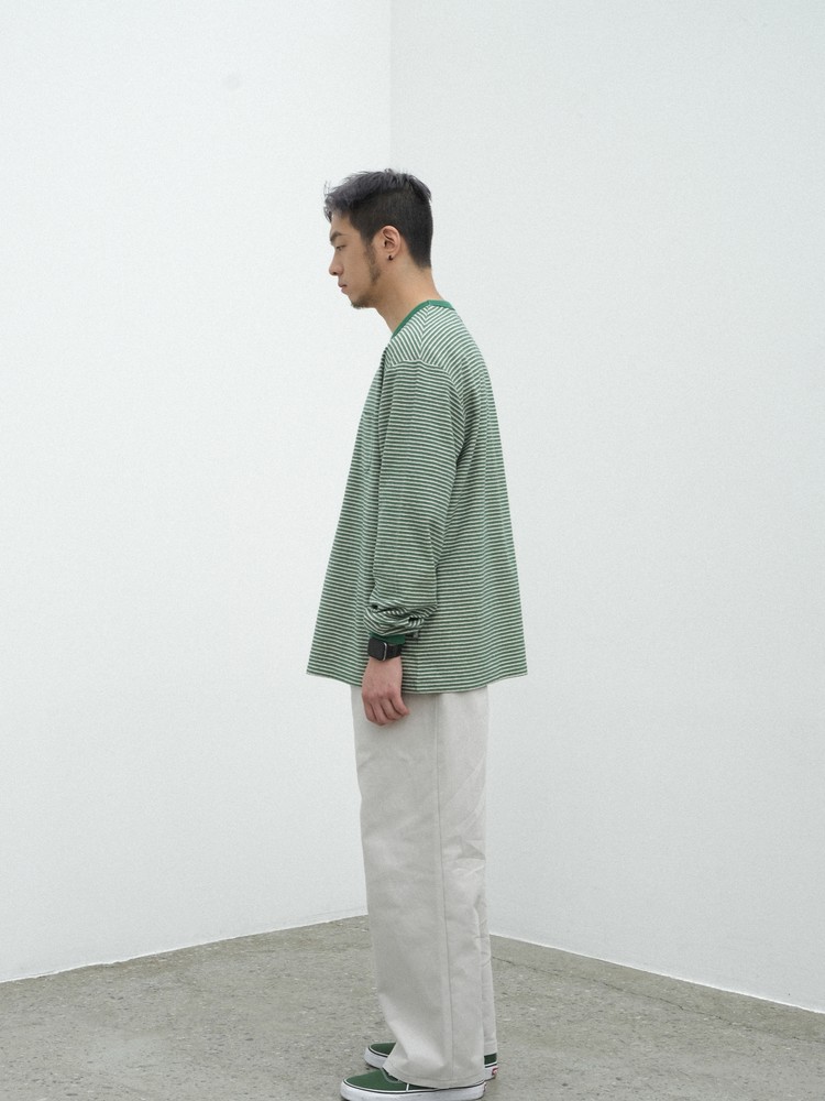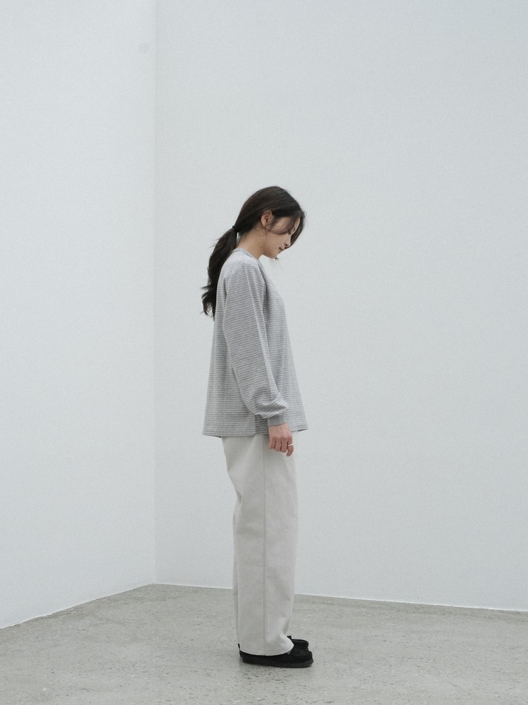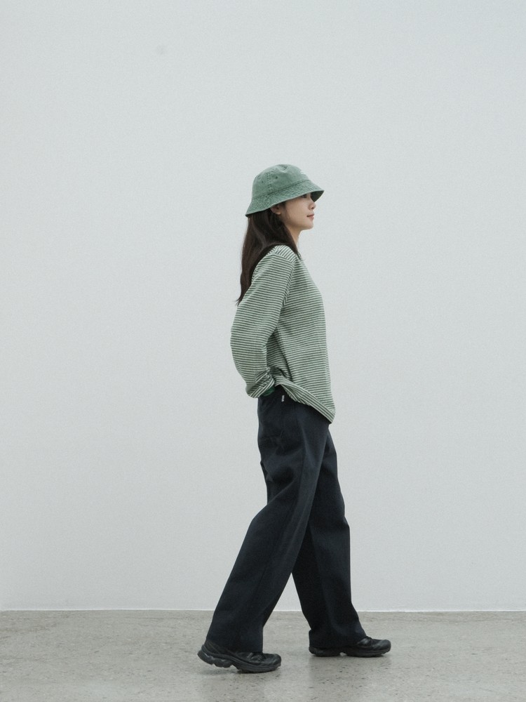 To emphasize the natural, rough texture of the stripes and ensure softness when worn, the fabric’s reverse side is used as the exterior.