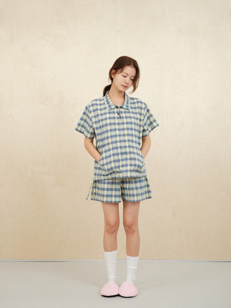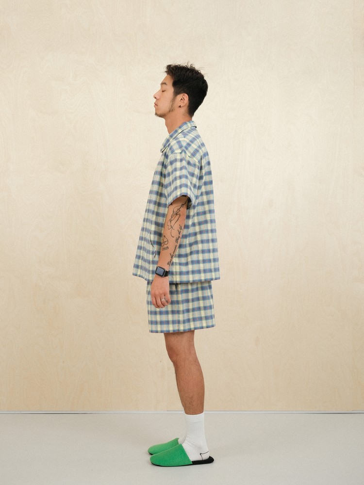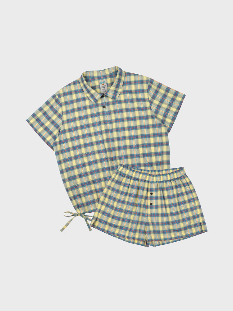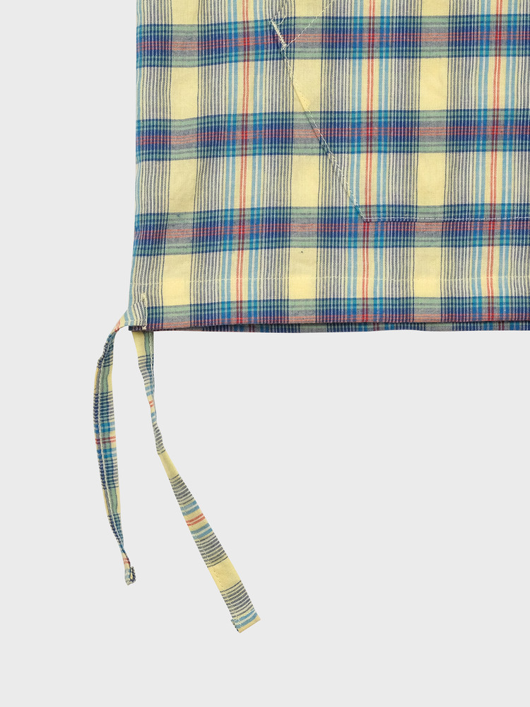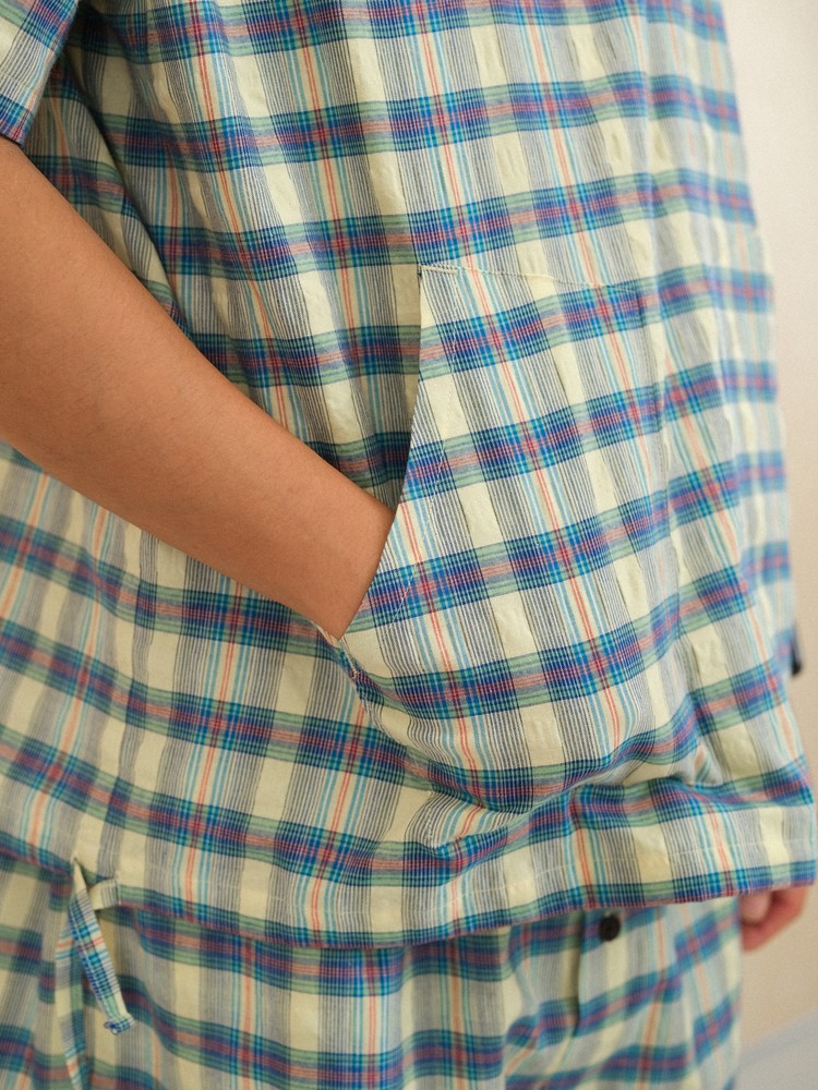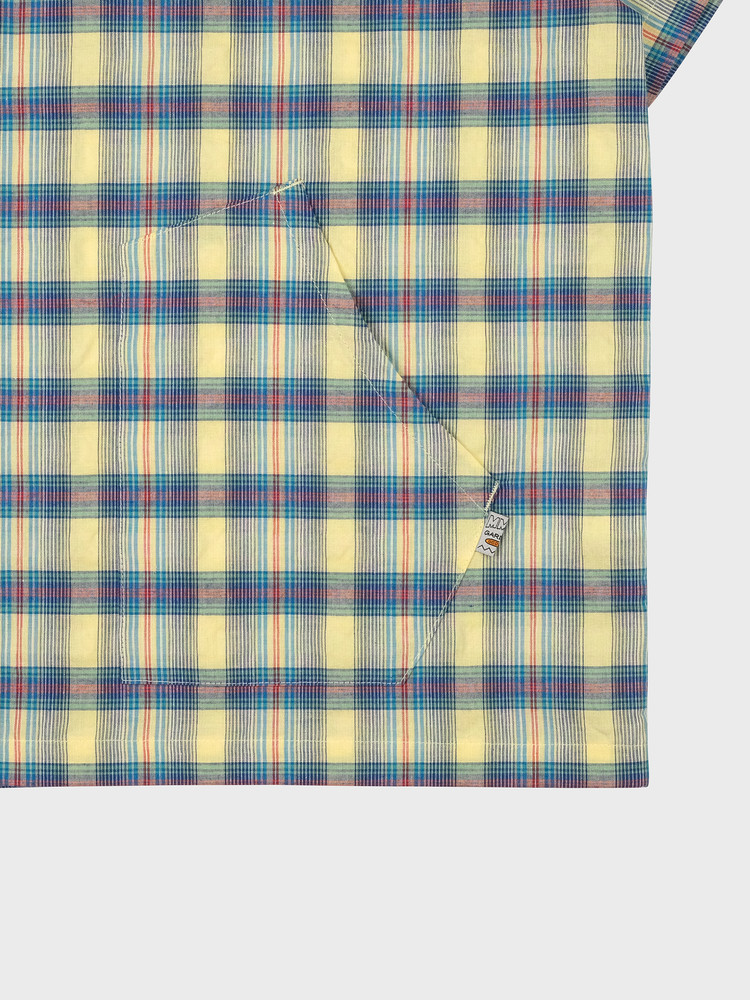 The Multi Check Yellow color features a lightweight, tightly woven cotton-polyester blend fabric.
