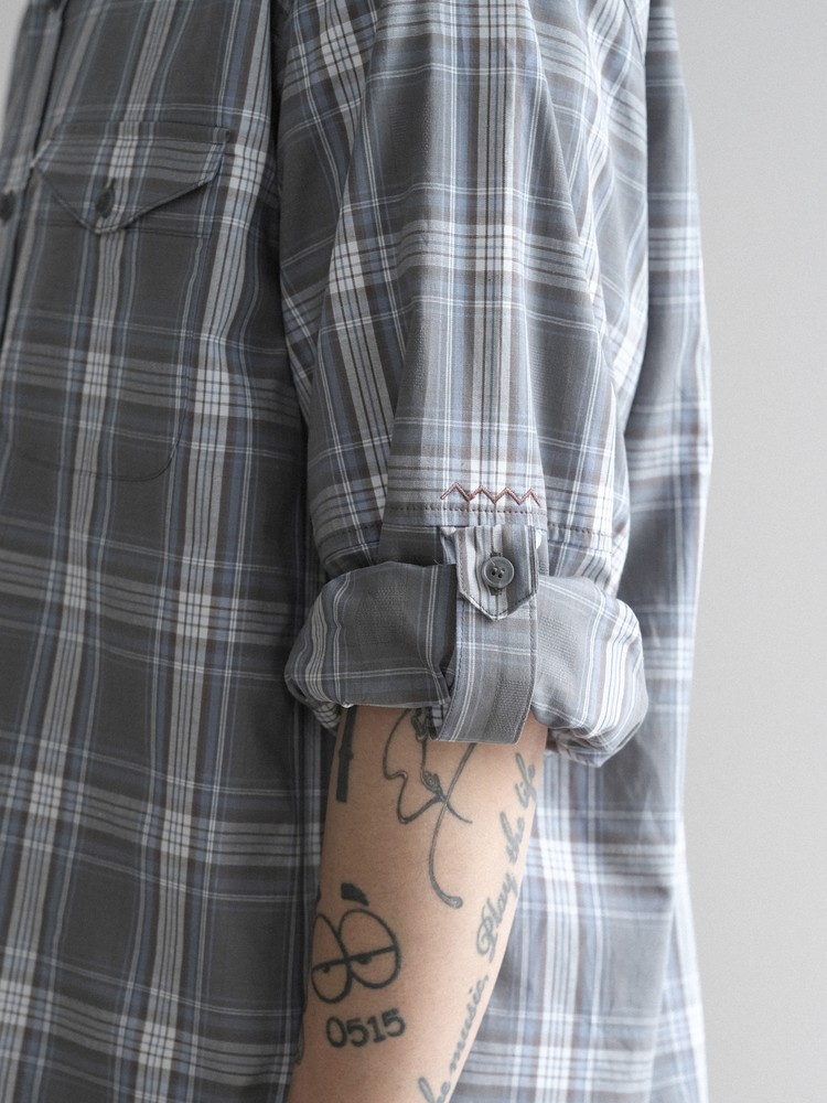 Side loops on the sleeve cuffs to secure rolled-up sleeves