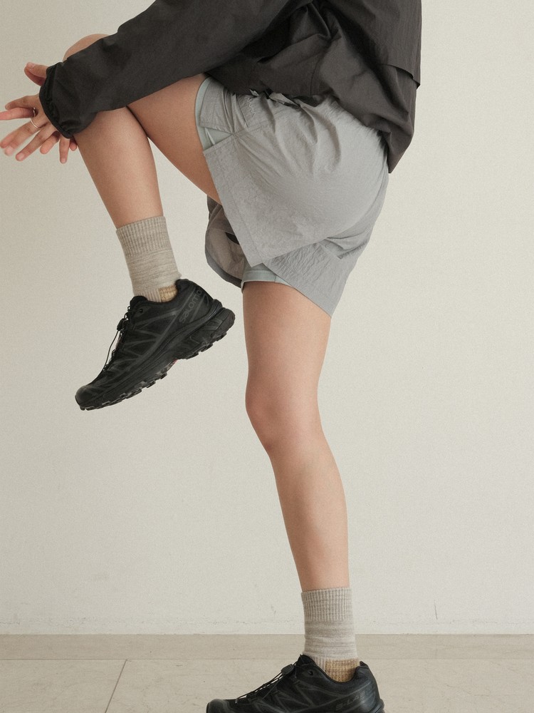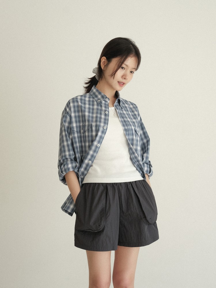Made from lightweight nylon fabric with a natural crinkle texture for quick-drying performance
