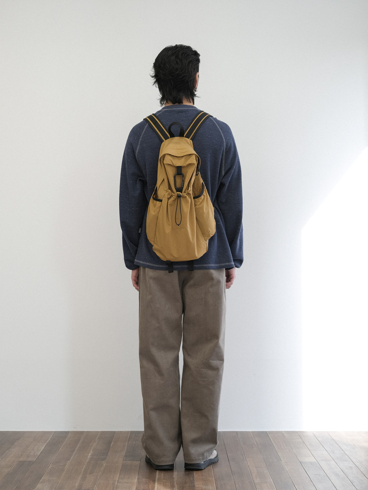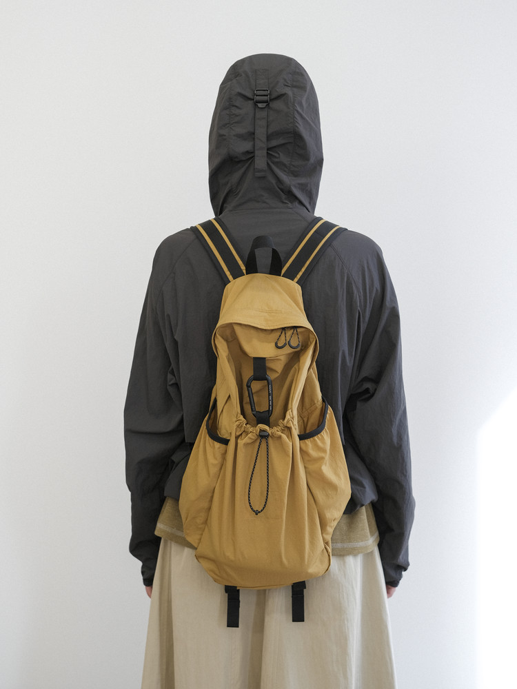 The front string pocket can be used to invert and pack the bag into a compact, packable form.
