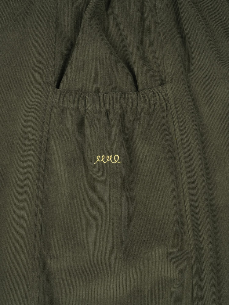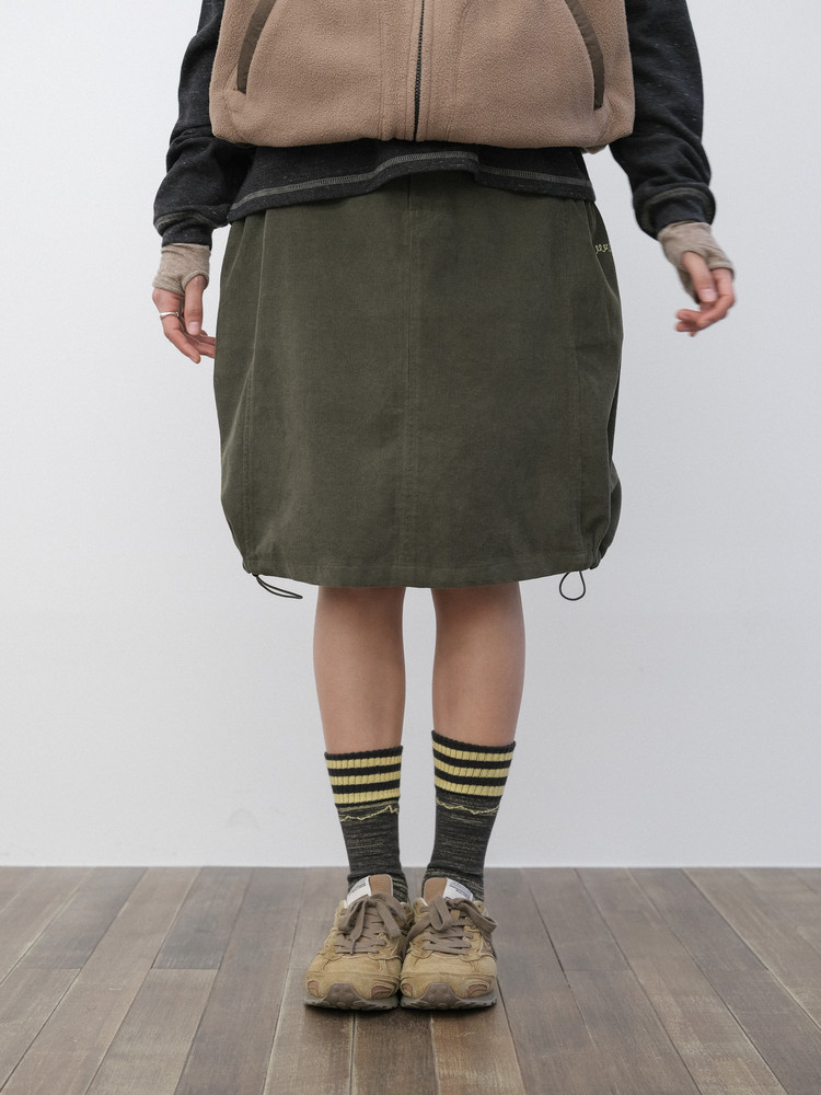 A-line silhouette with adjustable side stoppers at the hem for a balloon fit option
