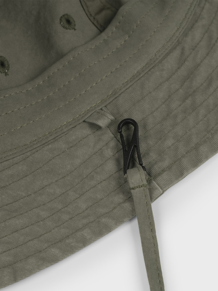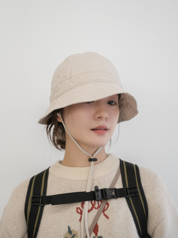 Detachable chin strap detail to hang the hat around your neck or prevent it from blowing away
