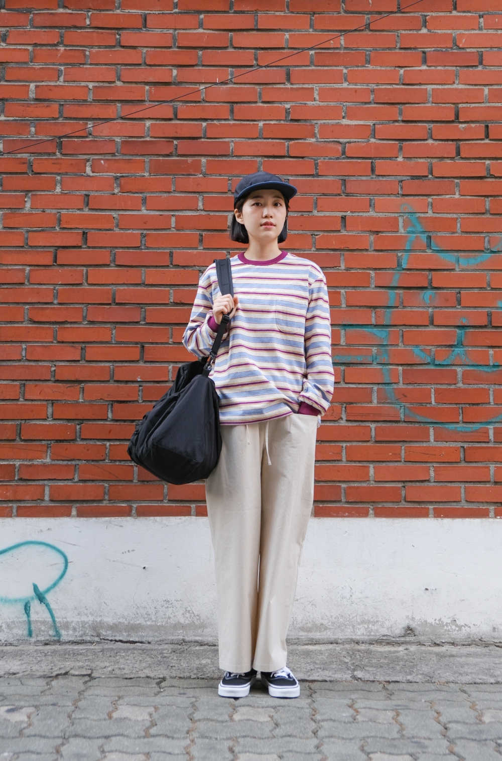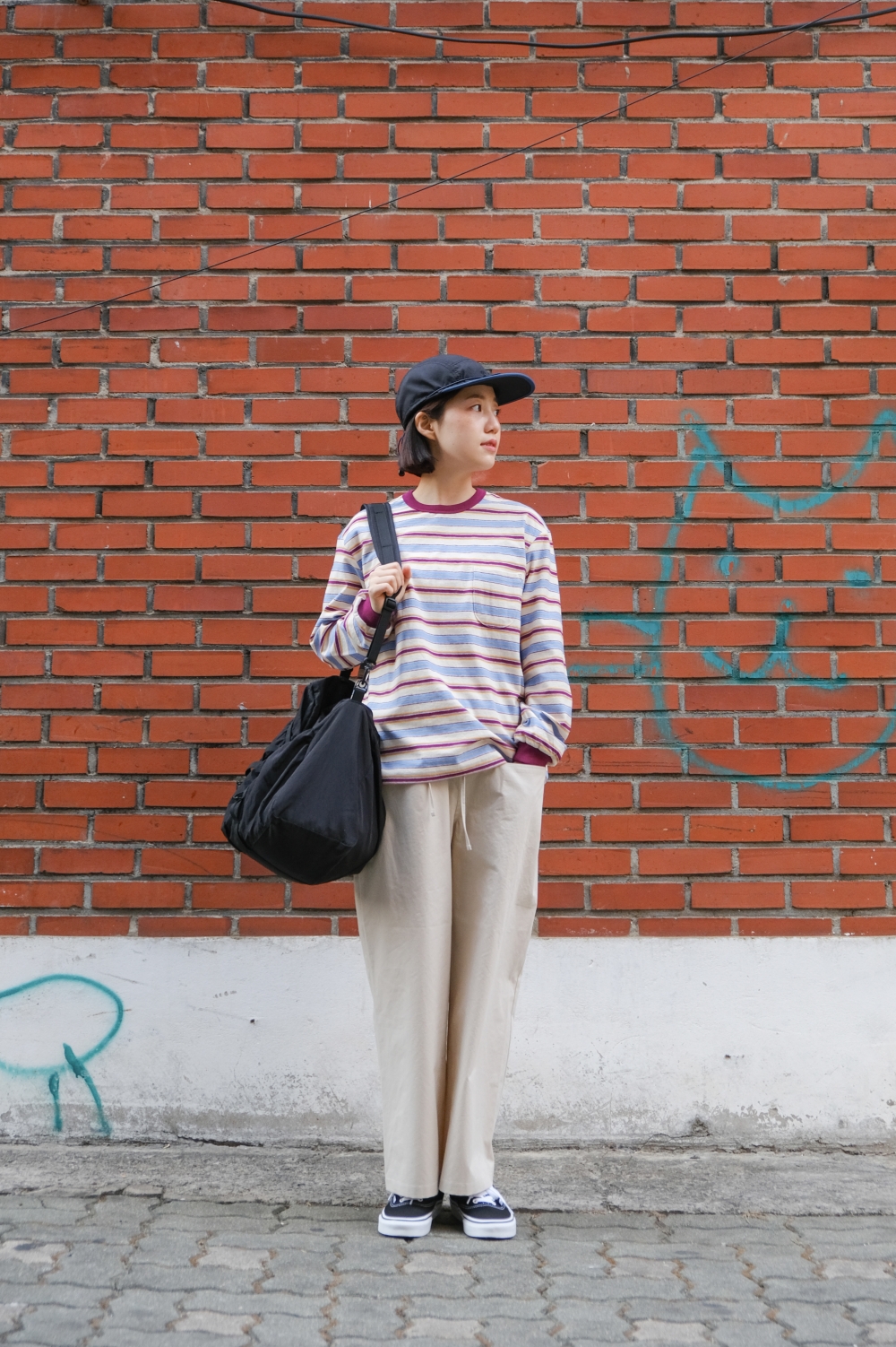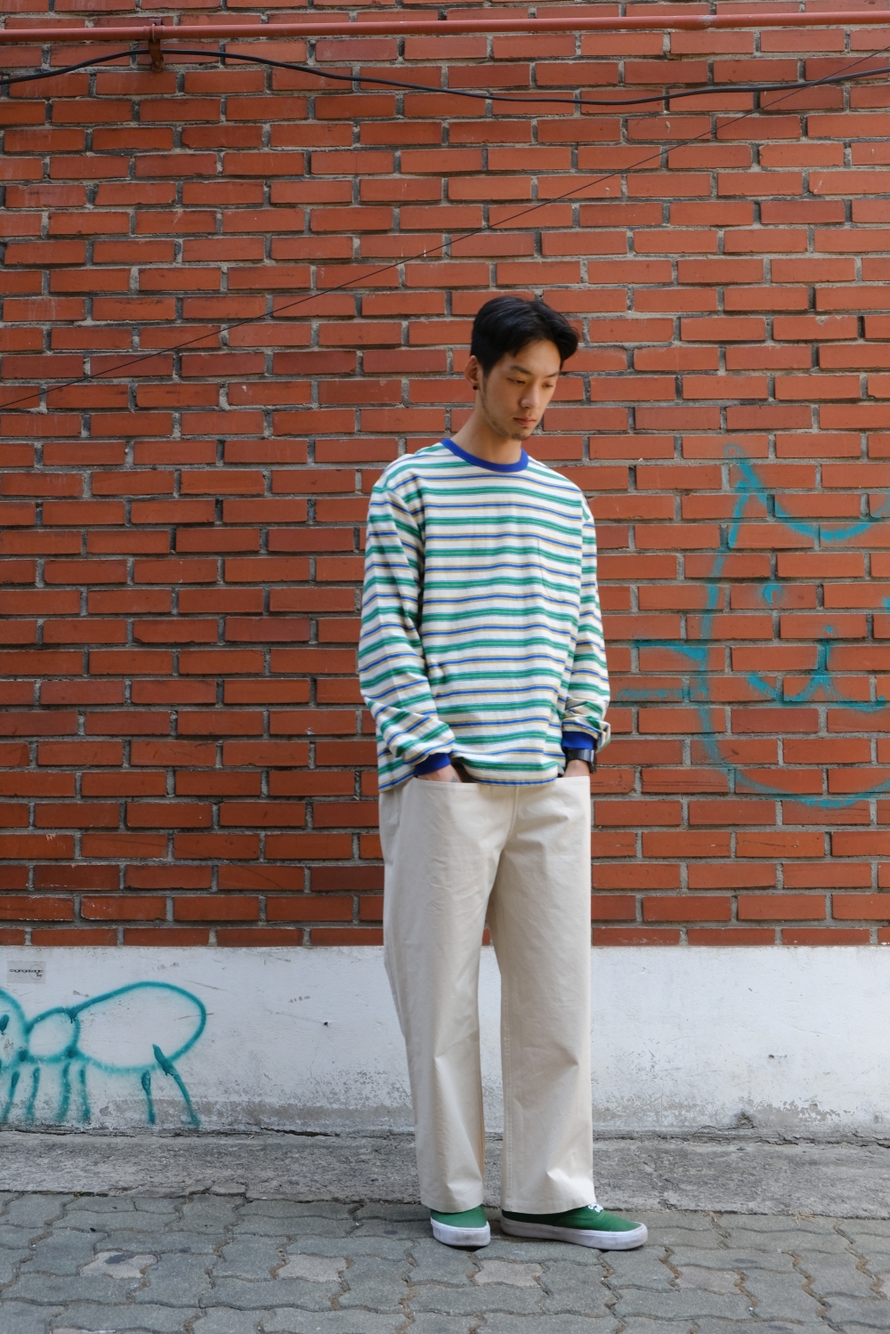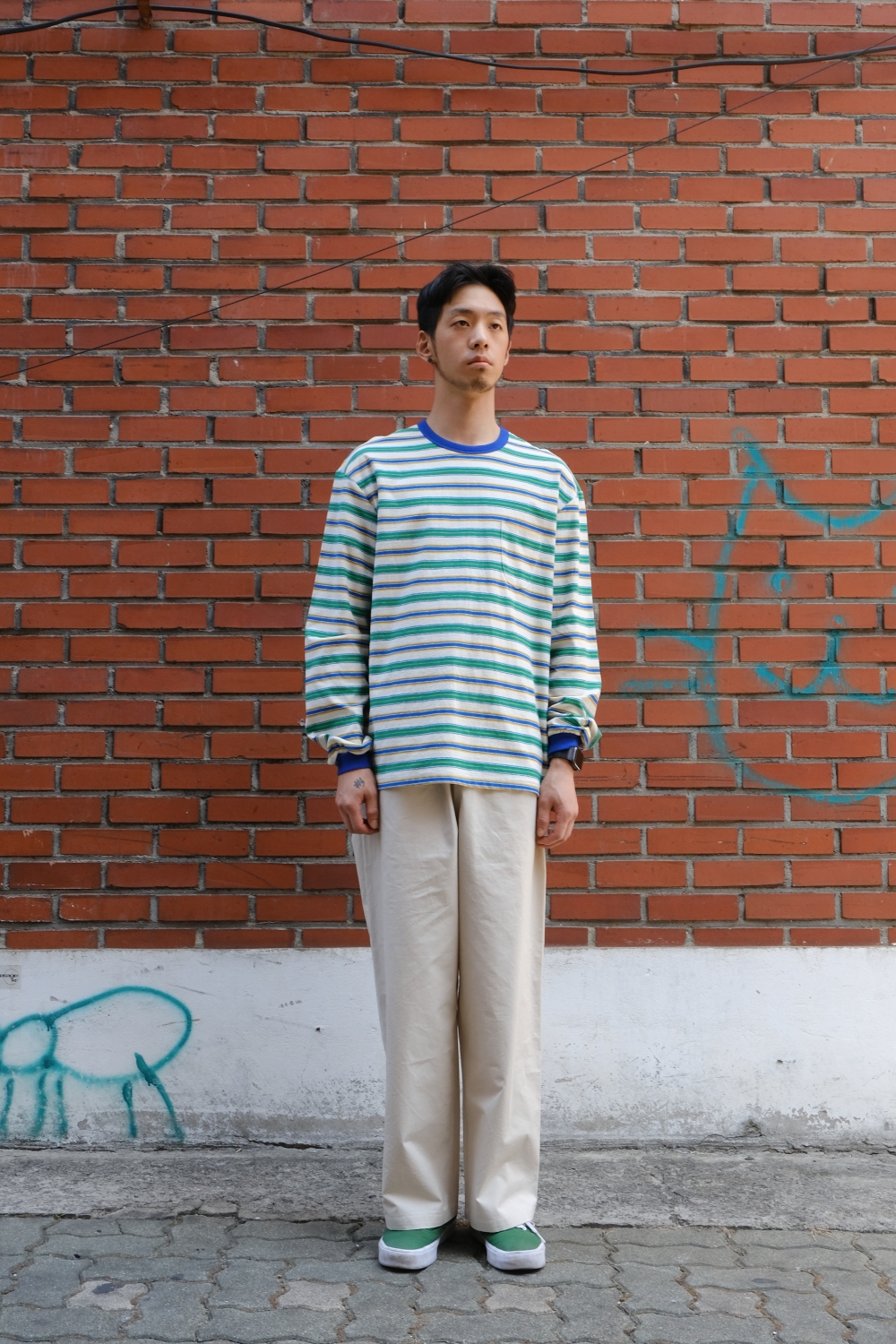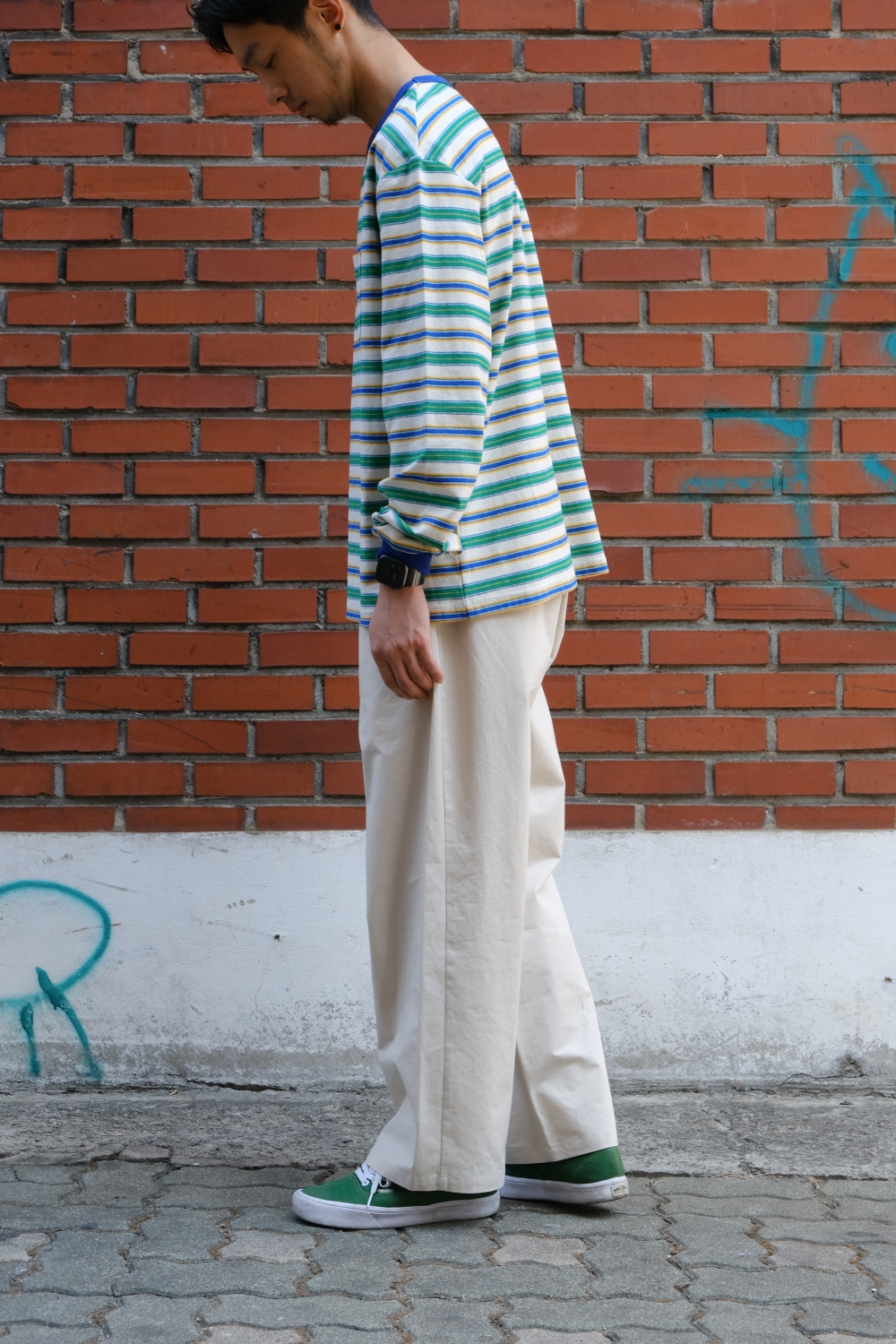 와이드 핏의 에메모 앞 포켓 팬츠입니다.