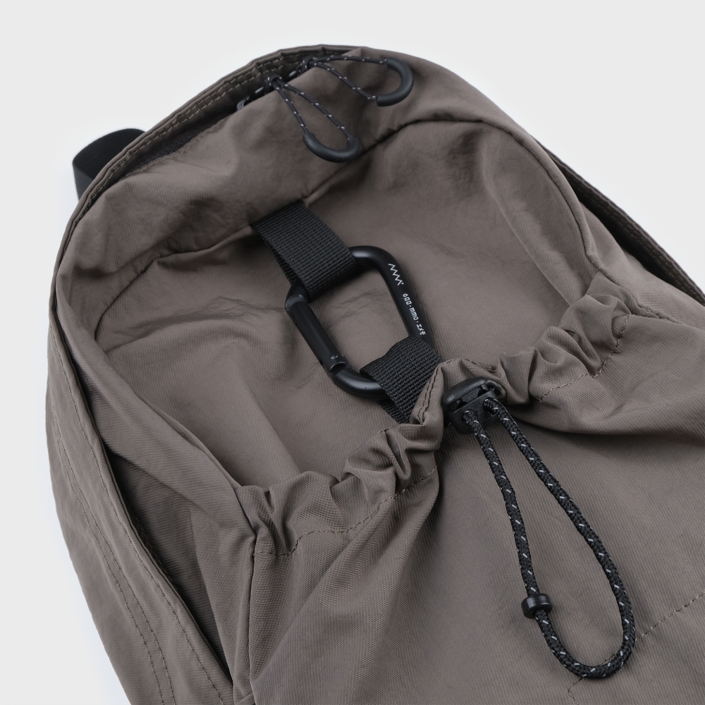 외부 양 사이드포켓과 전면 스트링 포켓으로