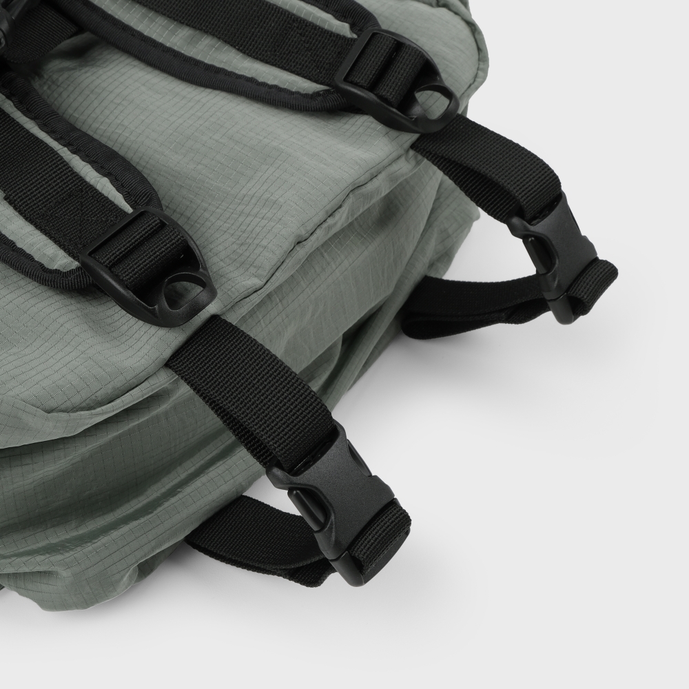 외부 양 사이드 포켓과 전면 스트링 포켓으로