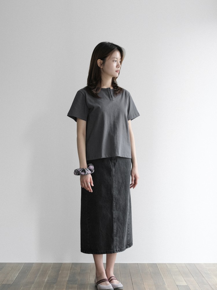A timeless denim skirt that you can wear for years without going out of style.