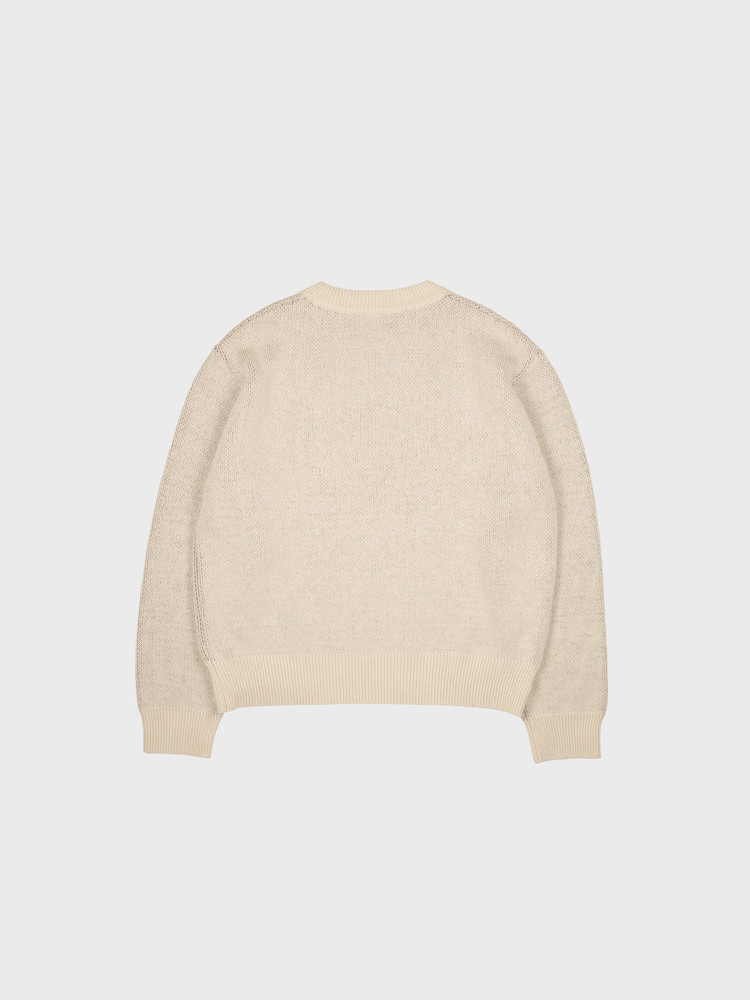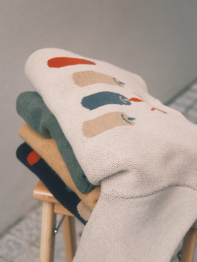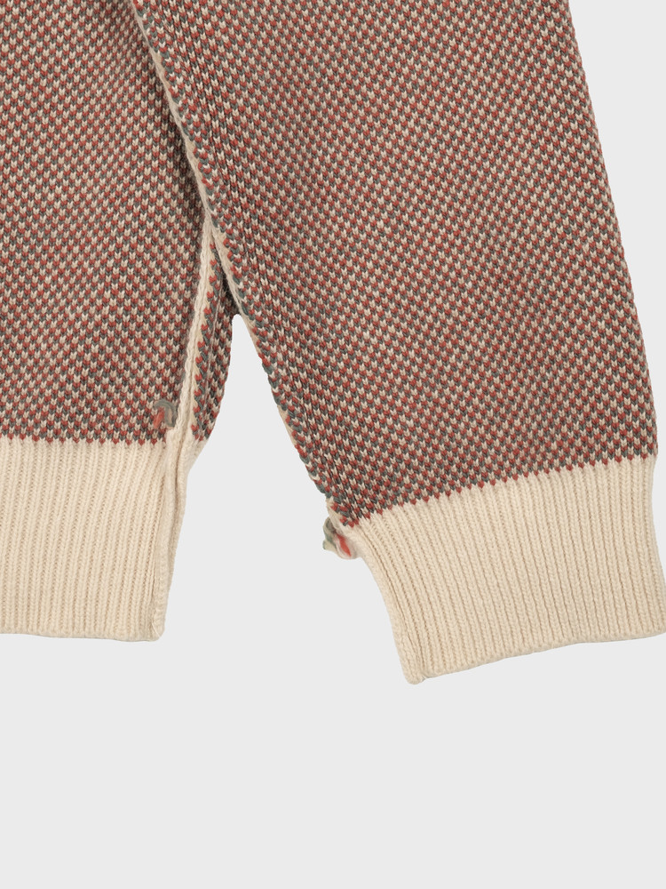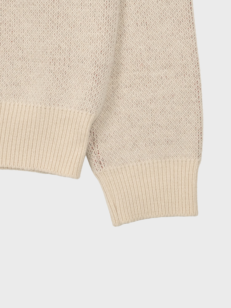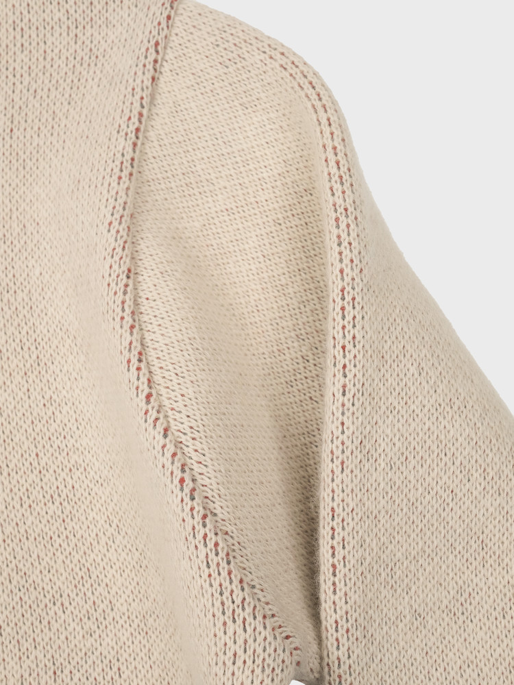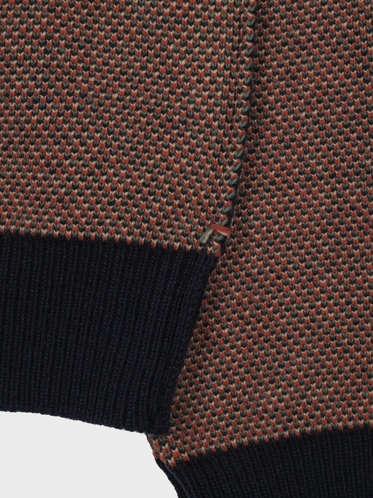 Unique jacquard knit composed of four colors, with subtle yarns visible on the surface for a rich, nuanced tone