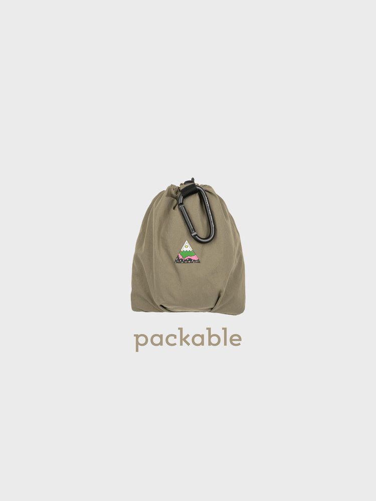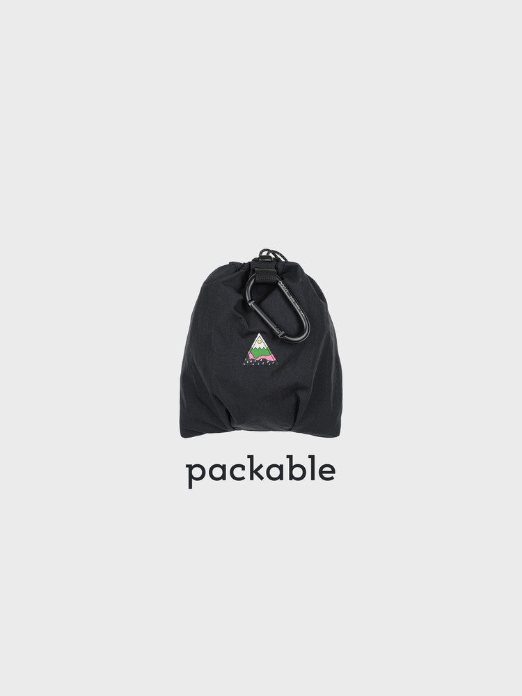 - Depending on the fabric color, the main label may be faintly visible through the front when in its packable form.