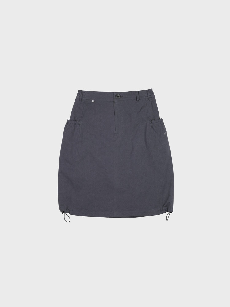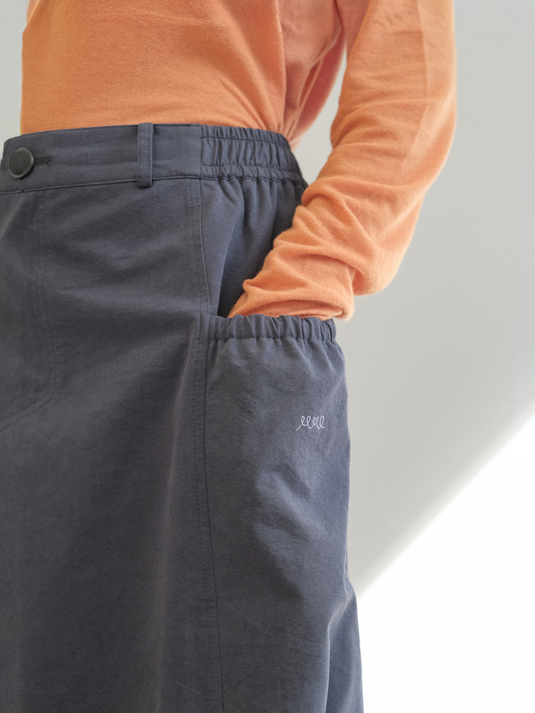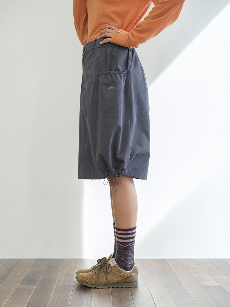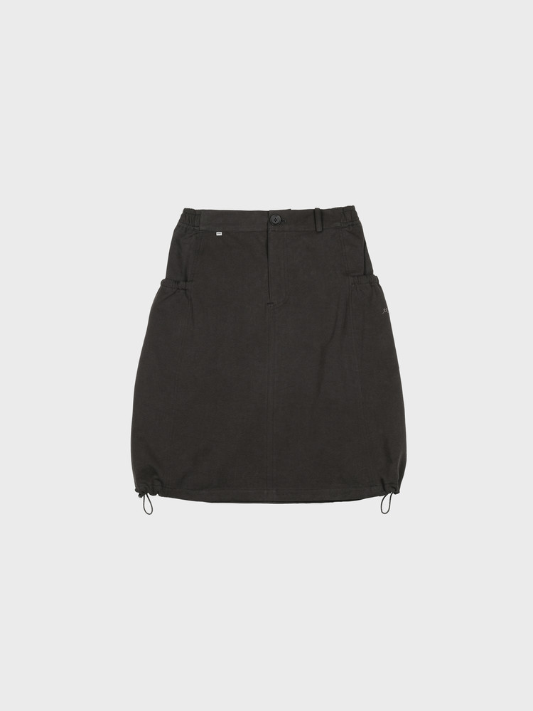 A-line silhouette with adjustable side stoppers at the hem for a balloon fit option