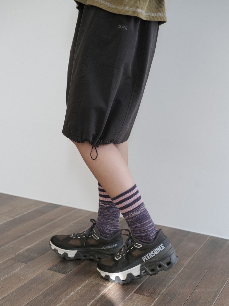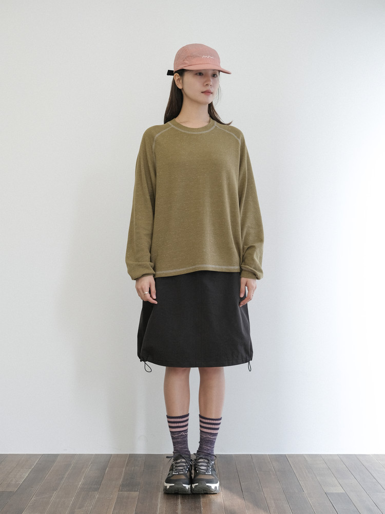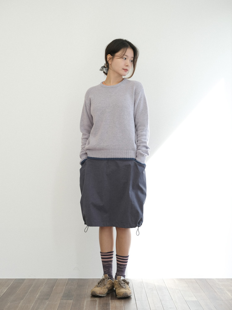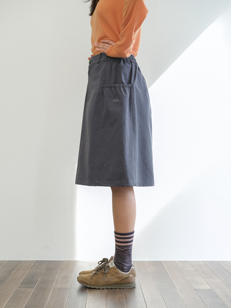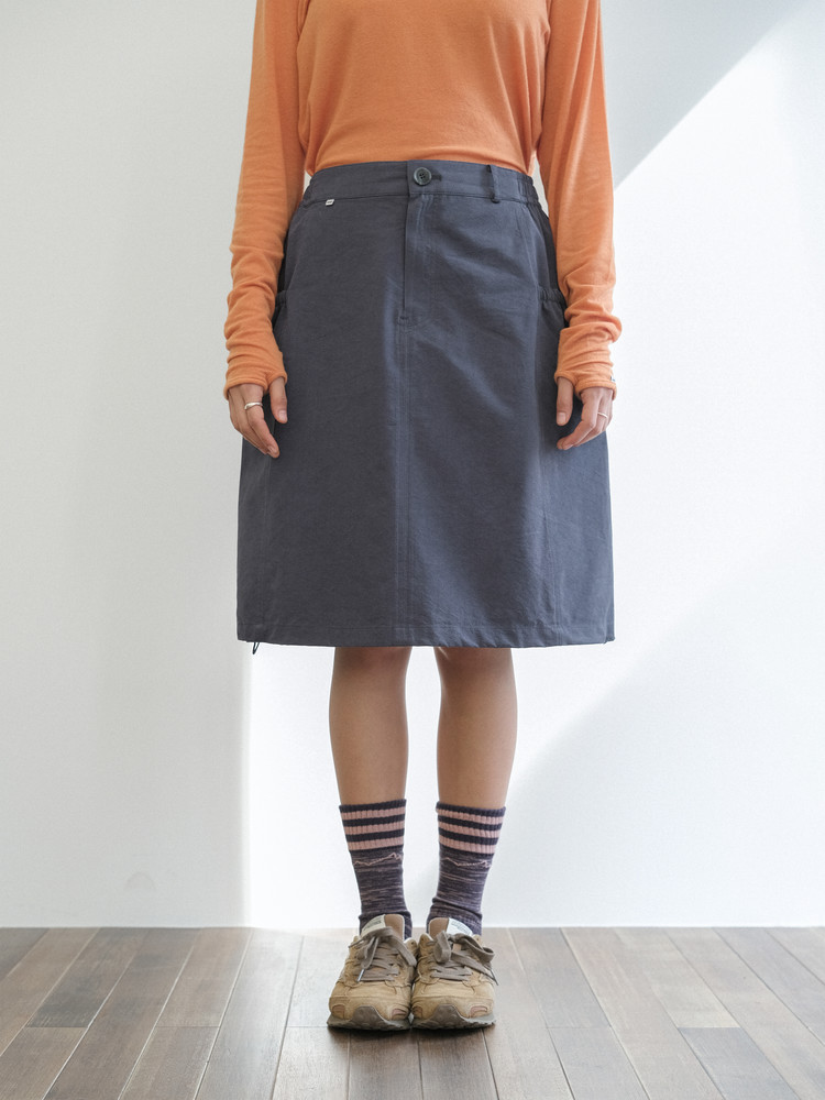 A-line silhouette with adjustable side stoppers at the hem for a balloon fit option