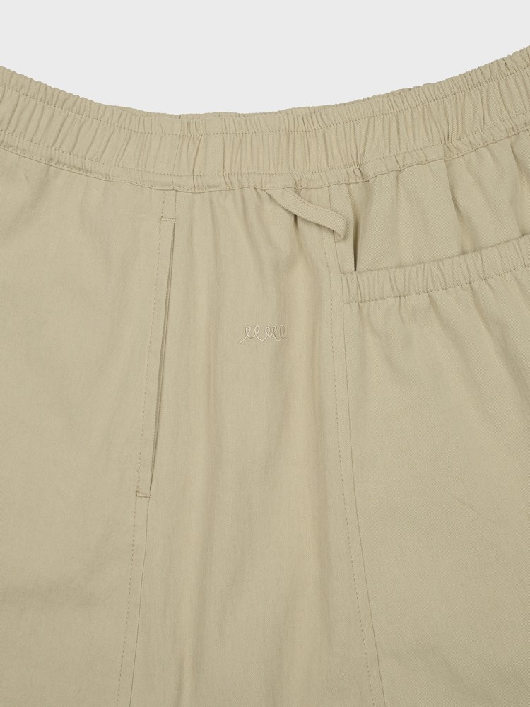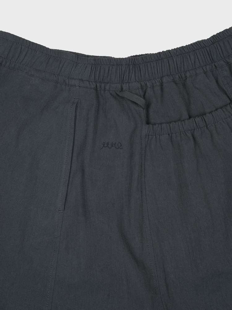 Front piece label beneath the belt line and tonal embroidery on the left side for subtle detailing