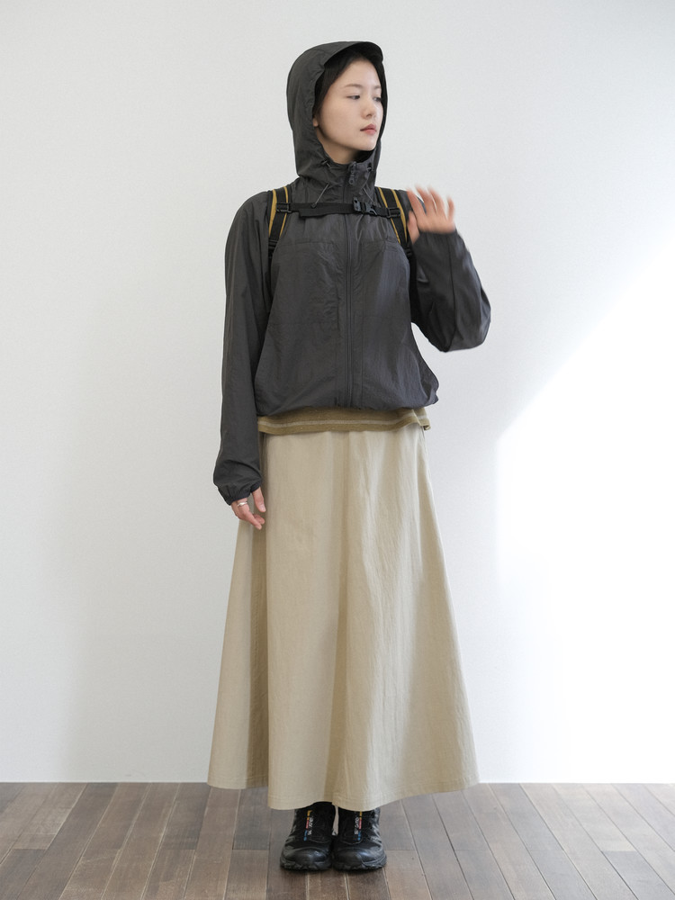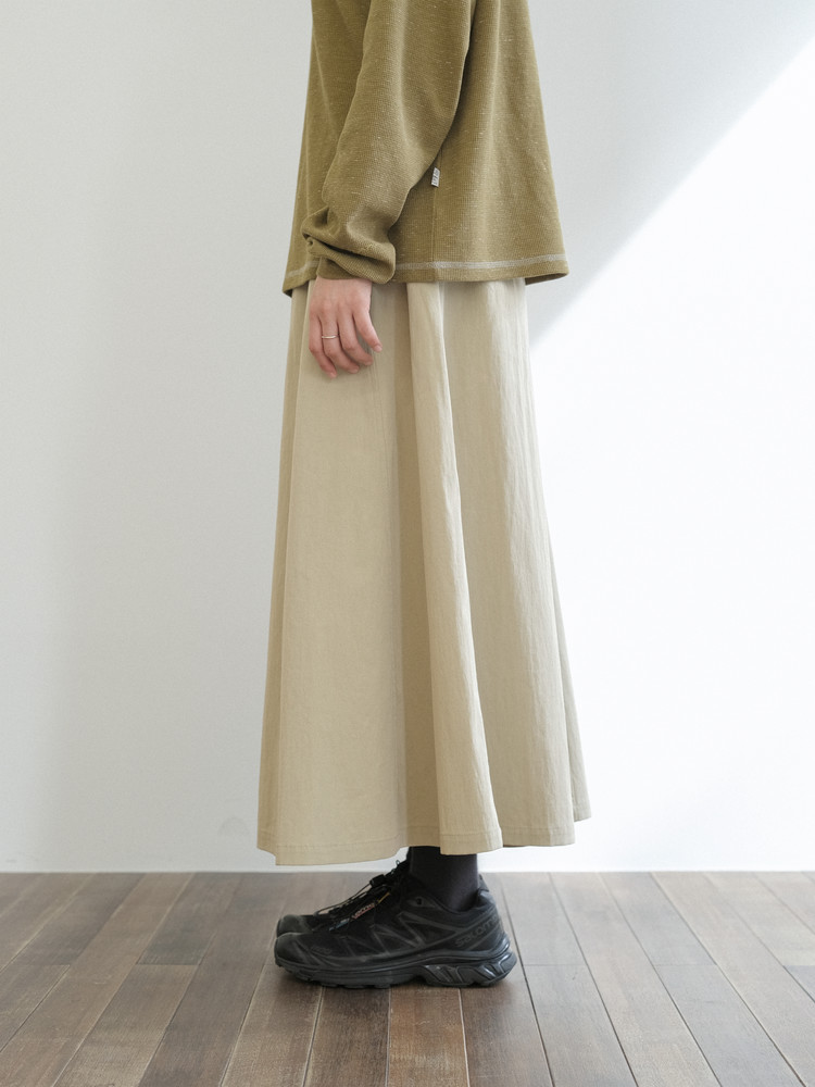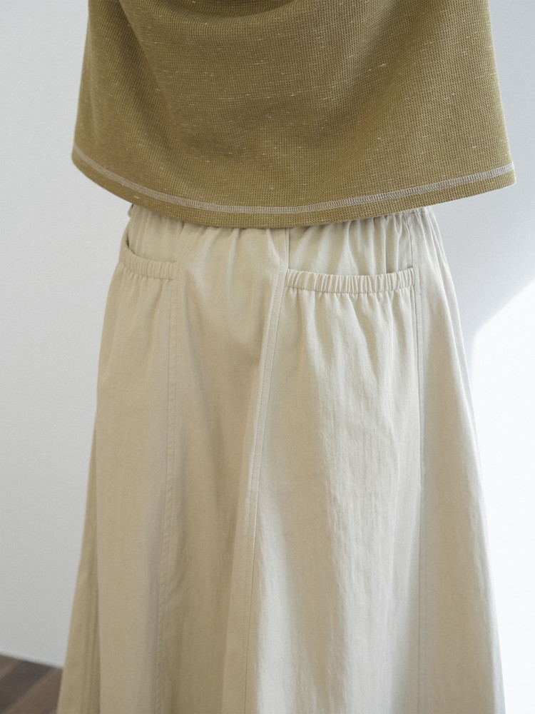 Elastic waistband skirt with an inner drawstring for adjustable sizing